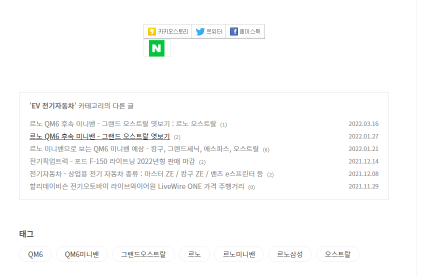 네이버 공유하기 버튼을 넣어주시는 것도 괜찮을 것 같습니다.