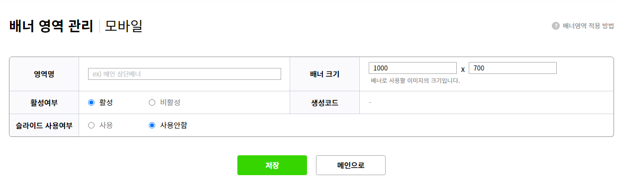 그리고 저장을 누른후에 배너 이미지를 등록하면 됩니다.